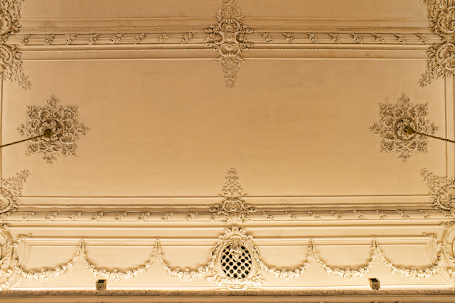 részlete is gondosan ki van dolgozva, selyemtapéta és faragványok borítják a
